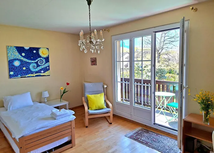 La villa se encuentra a unos 10 minutos en coche de Jet d'Eau. Los huéspedes pueden disfrutar de la proximidad a lugares de interés natural como el Parque La Grange, situado a unos 4,1 km. Los huéspedes también pueden visitar el Palacio de las Naciones, situado a unos 15 minutos en coche.
